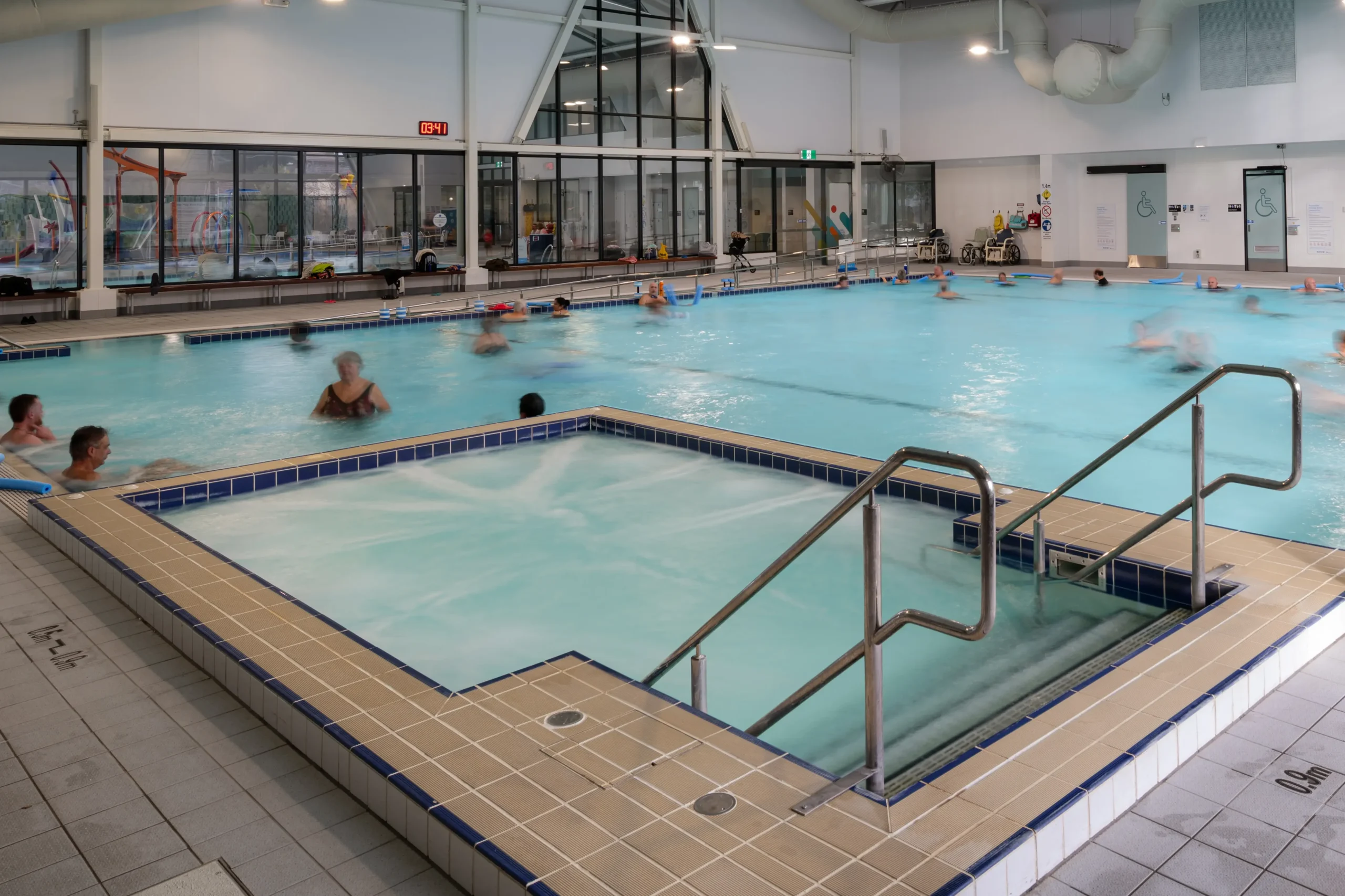 Our eight-lane indoor heated 25-metre pool provides recreational swimmers and lap swimmers alike a place to swim year-round. With aqua play features connected to entertain the little ones. Includes ramp access.